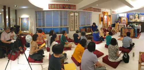 ,在本會台中佛堂帶領同修進行藥師佛法會,為仁波切的健康長壽祈願